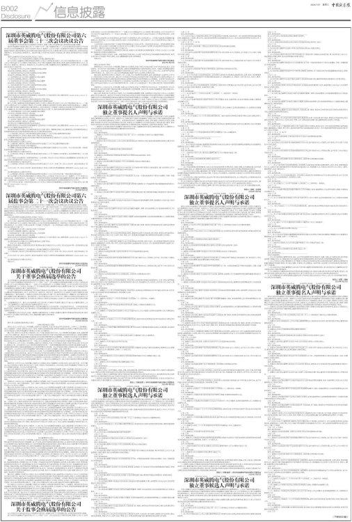 深圳市英威腾电气股份有限公司第六届董事会第三十三次会议决议公告
