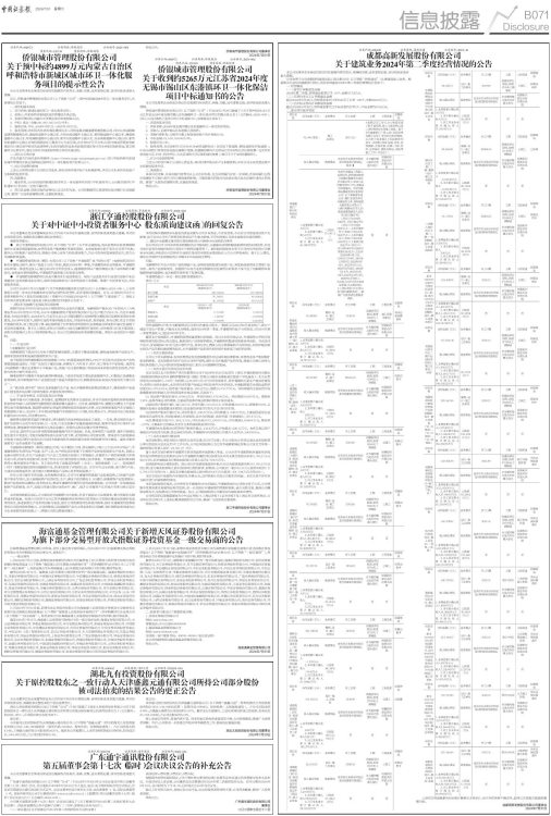 关于建筑业务2024年第二季度经营情况的公告
