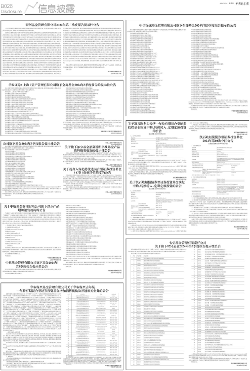 中信保诚基金管理有限公司旗下全部基金2024年第3季度报告提示性公告
