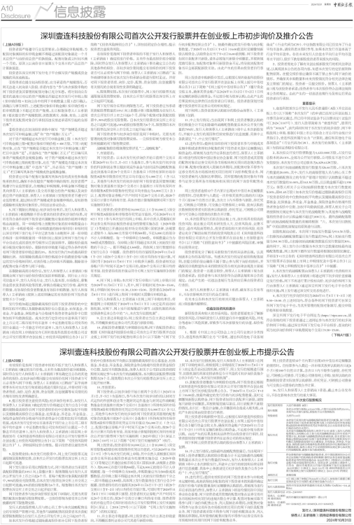 深圳壹连科技股份有限公司首次公开发行股票并在创业板上市初步询价及推介公告