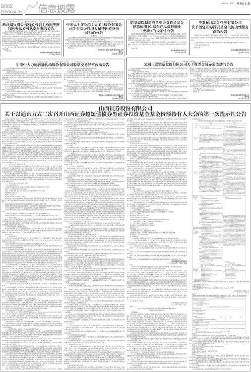 关于以通讯方式二次召开山西证券超短债债券型证券投资基金基金份额持有人大会的第一次提示性公告