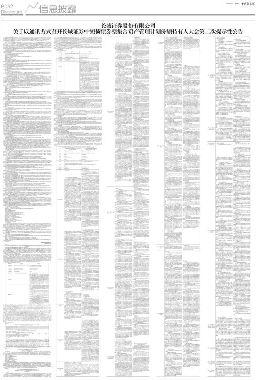 关于以通讯方式召开长城证券中短债债券型集合资产管理计划份额持有人大会第二次提示性公告
