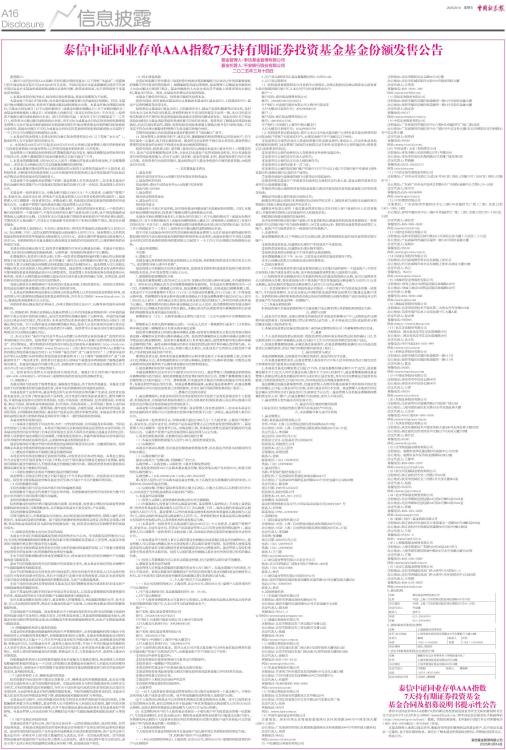 泰信中证同业存单AAA指数7天持有期证券投资基金基金份额发售公告