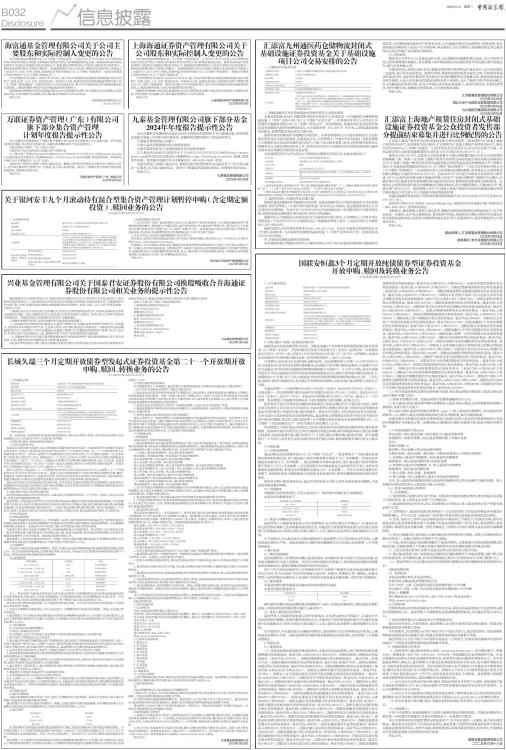 九泰基金管理有限公司旗下部分基金2024年年度报告提示性公告