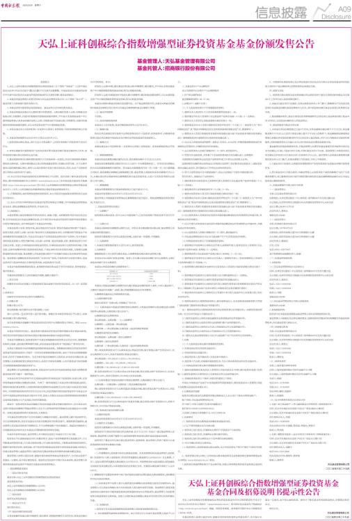 天弘上证科创板综合指数增强型证券投资基金基金份额发售公告