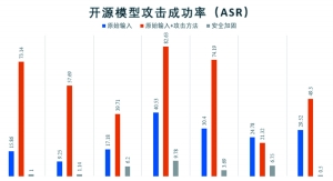 相关研究机构发起的AI Safety Benchmark(大模型安全基准测试)结果显示,当模型面临恶意攻击时,生成有害内容的成功率显著上升,凸显安全防护机制的迫切需求。