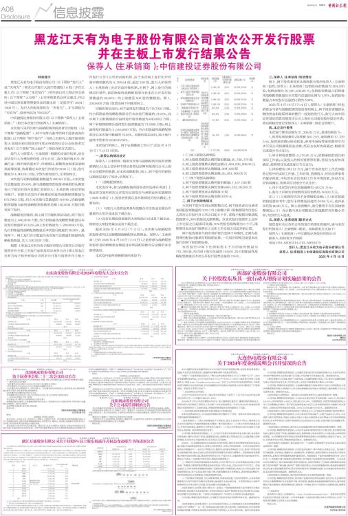 黑龙江天有为电子股份有限公司首次公开发行股票