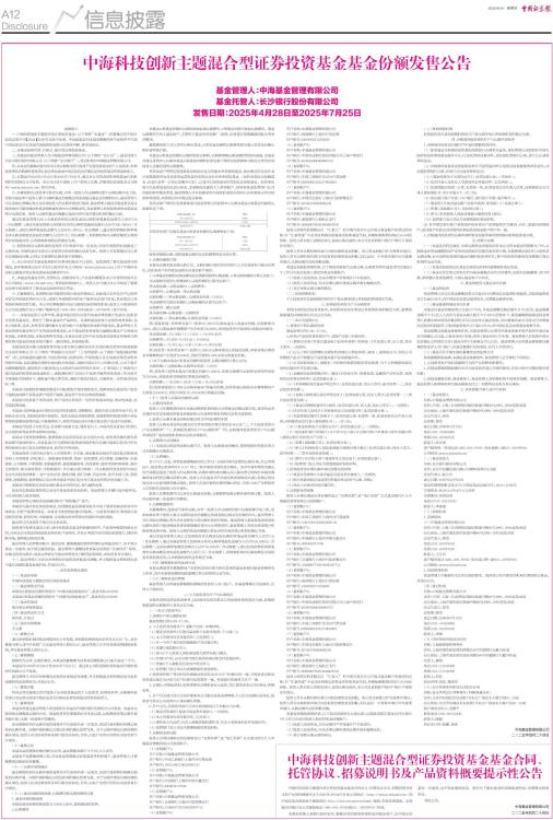 中海科技创新主题混合型证券投资基金基金份额发售公告
