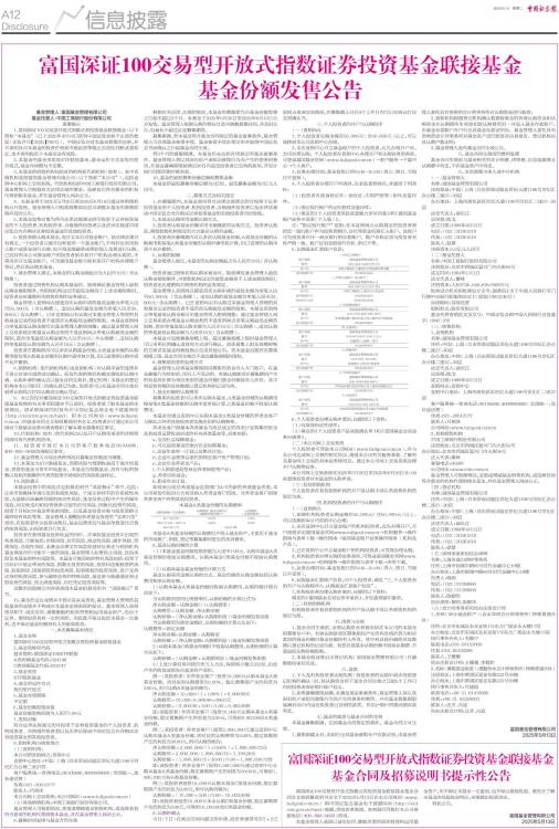 富国深证100交易型开放式指数证券投资基金联接基金基金合同及招募说明书提示性公告