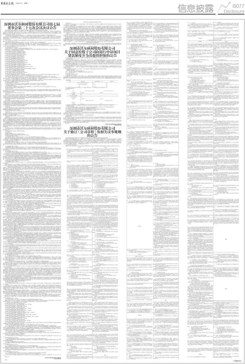 深圳市沃尔核材股份有限公司第七届董事会第二十七次会议决议公告