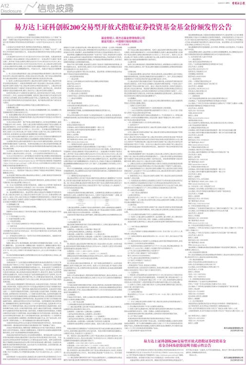 易方达上证科创板200交易型开放式指数证券投资基金基金份额发售公告