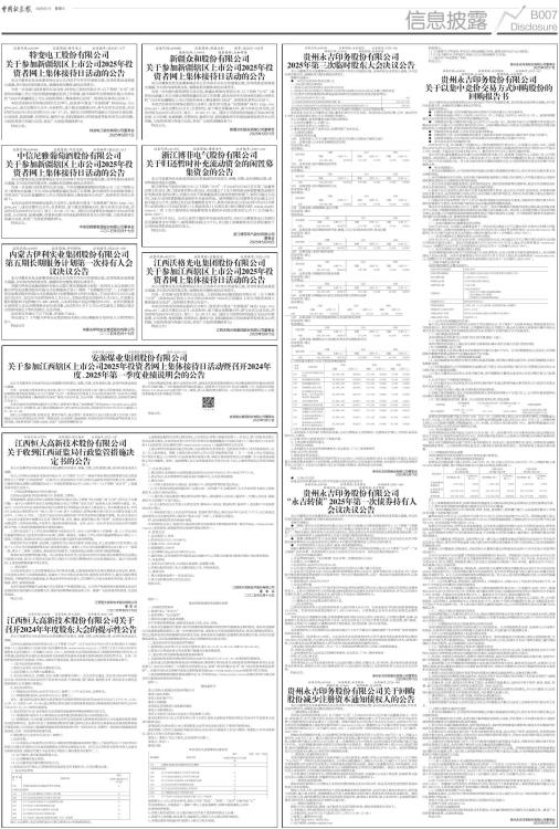 关于参加江西辖区上市公司2025年投资者网上集体接待日活动暨召开2024年度、2025年第一季度业绩说明会的公告