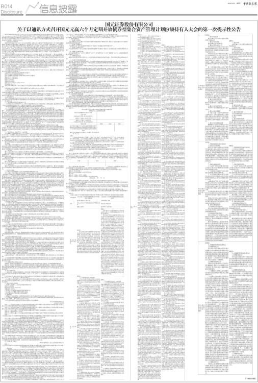 关于以通讯方式召开国元元赢六个月定期开放债券型集合资产管理计划份额持有人大会的第一次提示性公告