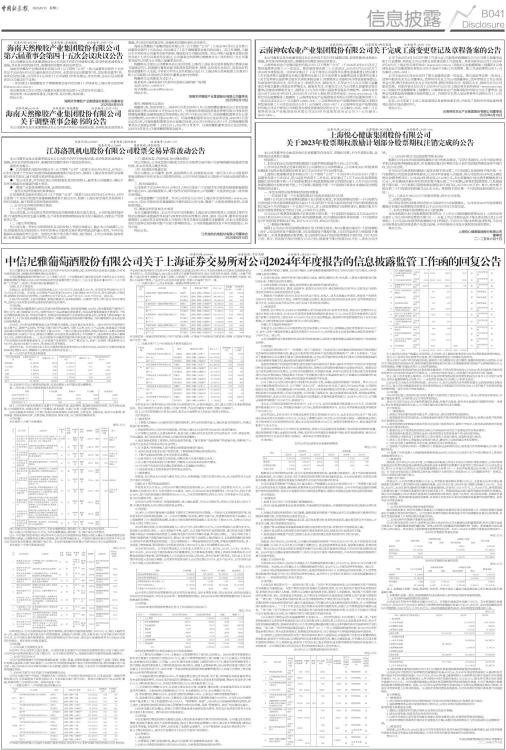 中信尼雅葡萄酒股份有限公司关于上海证券交易所对公司2024年年度报告的信息披露监管工作函的回复公告