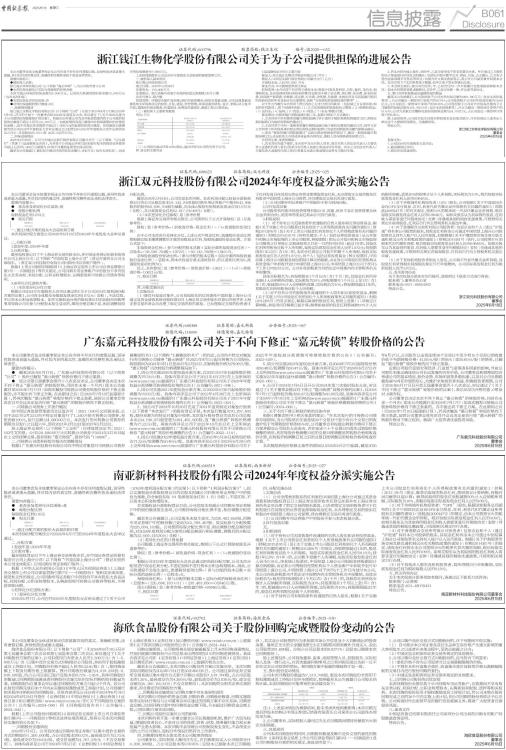 浙江双元科技股份有限公司2024年年度权益分派实施公告