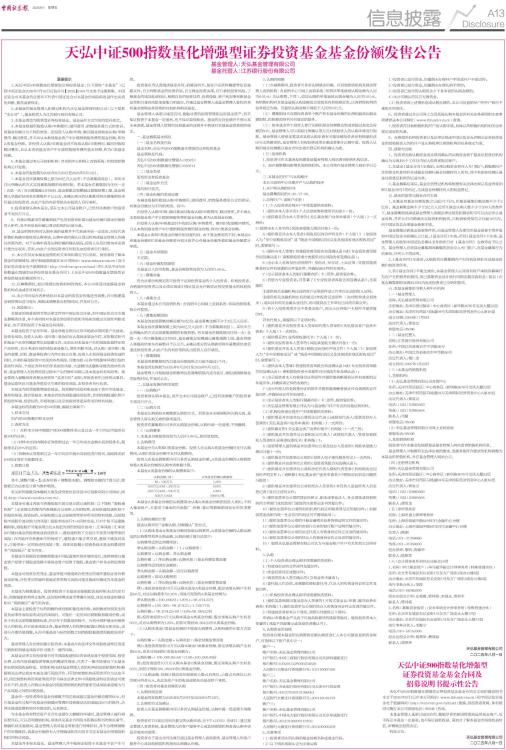 天弘中证500指数量化增强型证券投资基金基金份额发售公告