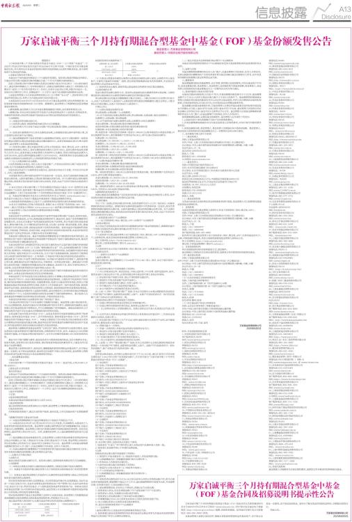 万家启诚平衡三个月持有期混合型基金中基金(FOF)基金份额发售公告