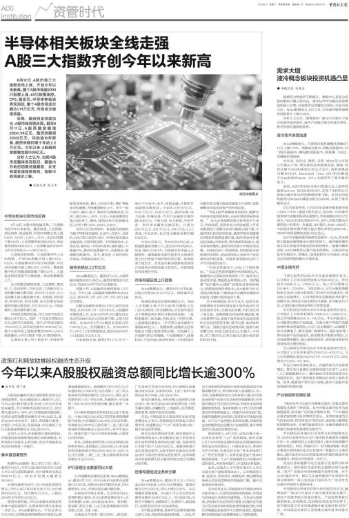 今年以来A股股权融资总额同比增长逾300%