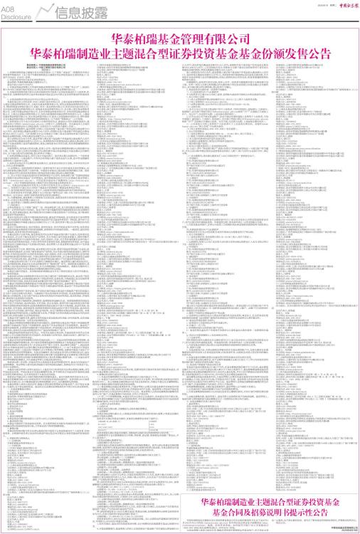 华泰柏瑞制造业主题混合型证券投资基金基金份额发售公告