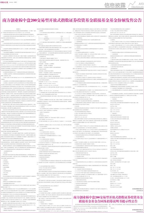 南方创业板中盘200交易型开放式指数证券投资基金联接基金基金合同及招募说明书提示性公告