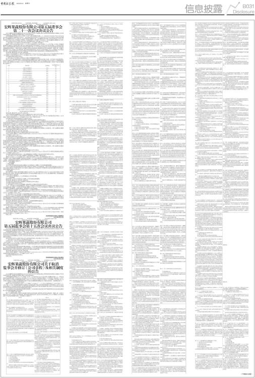 宏辉果蔬股份有限公司第五届董事会第二十一次会议决议公告