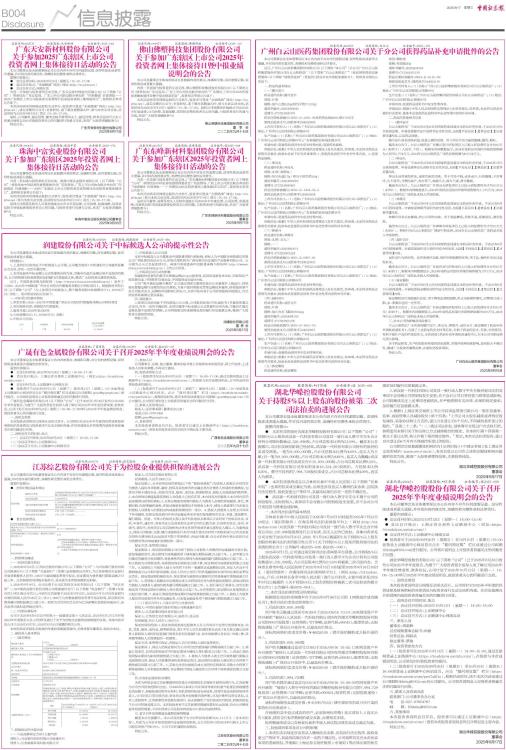 关于参加广东辖区2025年投资者网上集体接待日活动的公告