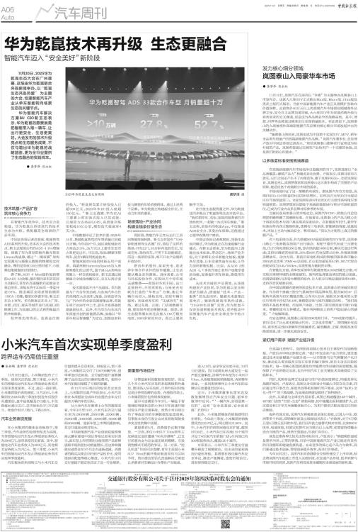 小米汽车首次实现单季度盈利
