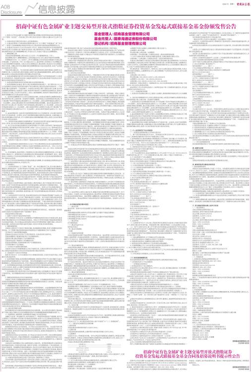 招商中证有色金属矿业主题交易型开放式指数证券投资基金发起式联接基金基金份额发售公告