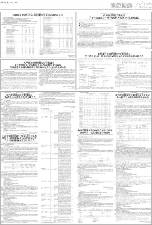申能股份有限公司2025年度控股发电量完成情况公告