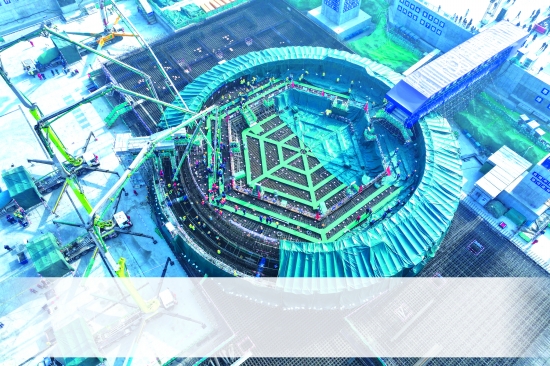 1月16日,1号机组核岛开始混凝土浇筑(无人机照片)。