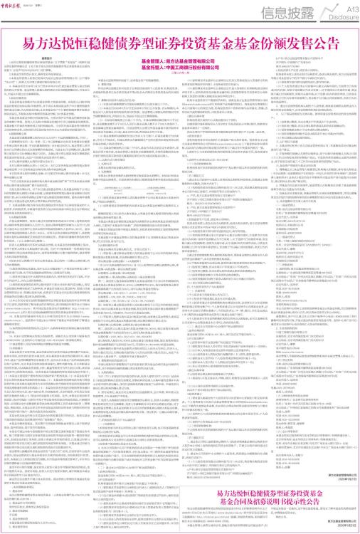 易方达悦恒稳健债券型证券投资基金基金份额发售公告