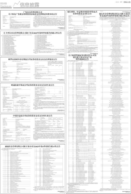 汇丰晋信基金管理有限公司旗下基金2025年第四季度报告的提示性公告