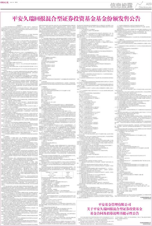 平安久瑞回报混合型证券投资基金基金份额发售公告
