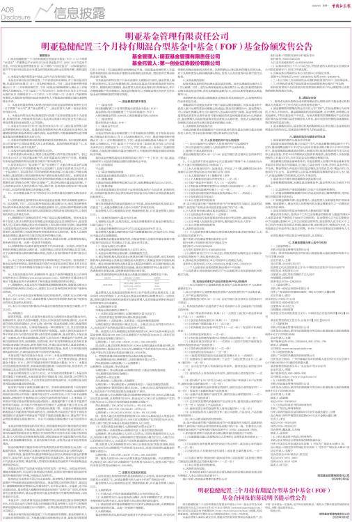 明亚稳健配置三个月持有期混合型基金中基金(FOF)基金份额发售公告