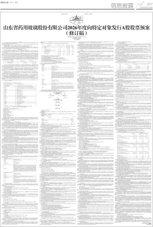 山东省药用玻璃股份有限公司2026年度向特定对象发行A股股票预案(修订稿)